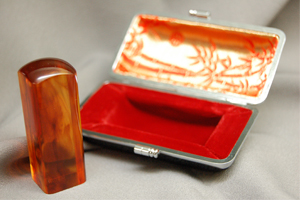 人画が土性の方の最適な開運印鑑の印材は、牛角(上)・琥珀(コハク)・本つげです。